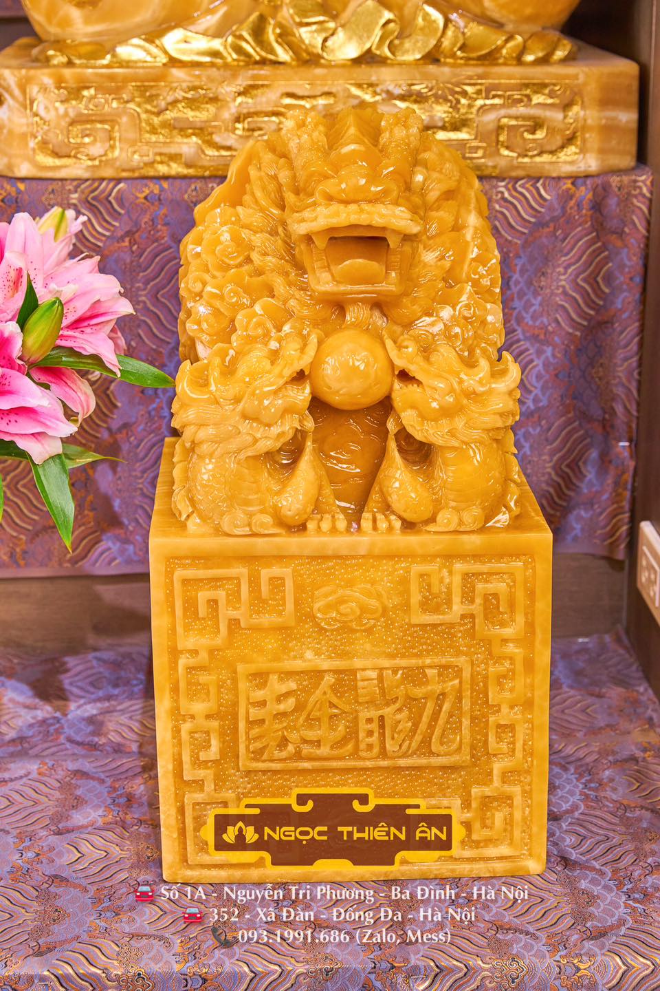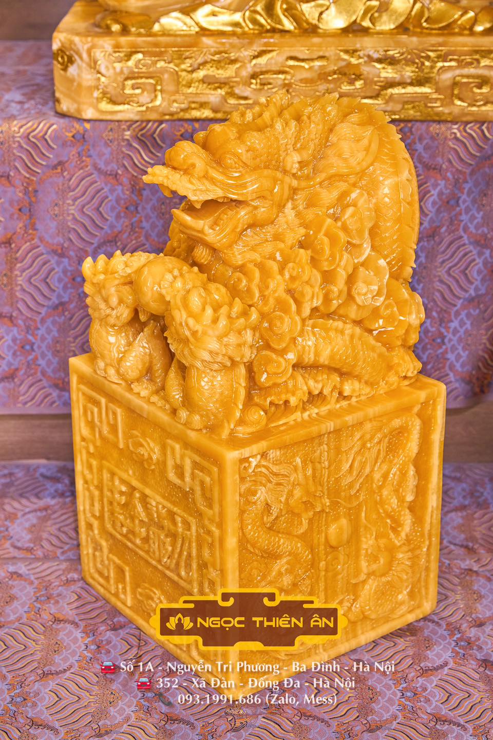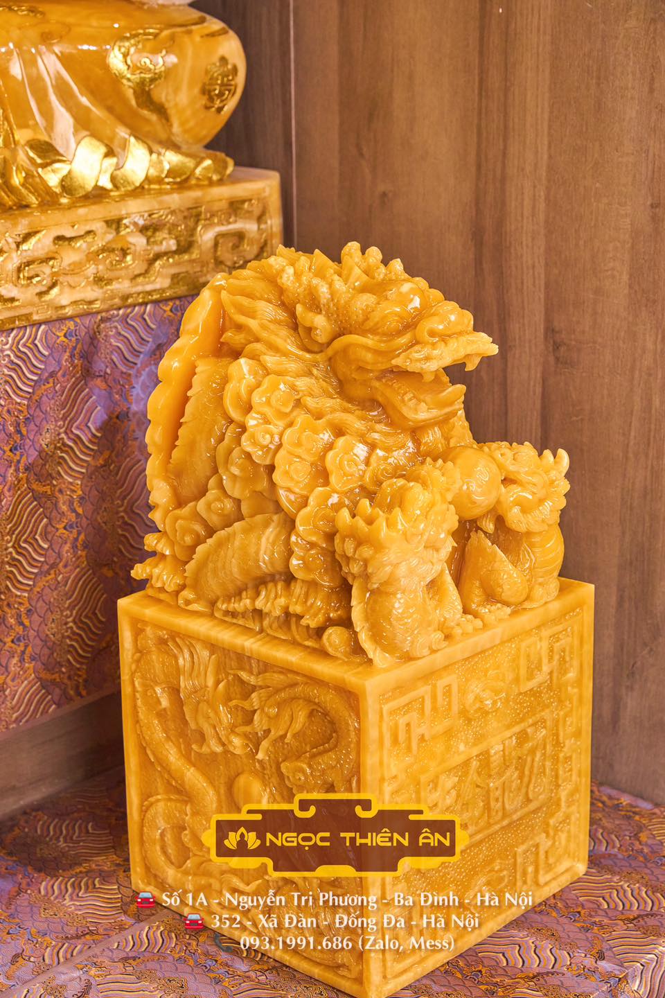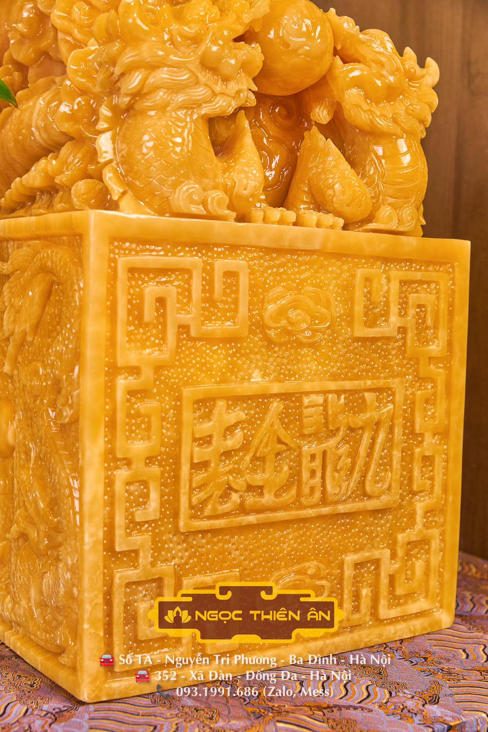 Rồng Ngự Trên Ấn – Hoàng Long Ngọc Uy Quyền Trong Tay – Vạn Đại Vinh Ấn Rồng Ngọc Hoàng Long nguyên khối do các Nghệ Nhân tại NGỌC THIÊN ÂN chạm khắc thủ công Ấn Ngọc Rồng vốn được xem như sự kết hợp sức mạnh giữa Trời và Đất nên phát ra dương khí vô cùng mạnh, gia tăng thịnh vượng trường tồn, giàu sang phú quý, …
